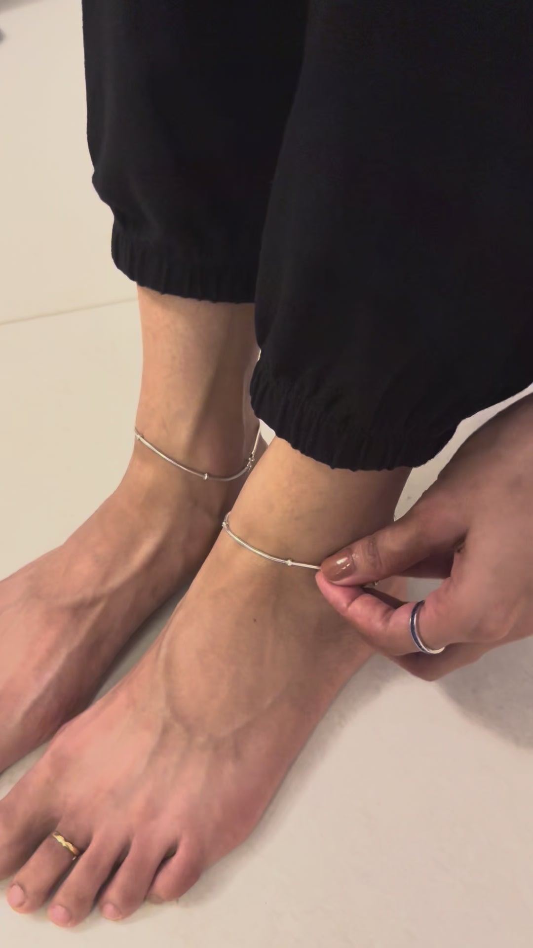Delicate, timeless, and effortlessly elegant – the Mira Anklet is your go-to silver essential. Handcrafted in 925 sterling silver, this minimal chain anklet is designed to add a soft shimmer to your every step.
