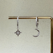 These Star & Moon Zircon Hoops are crafted in pure 925 sterling silver and adorned with dazzling zircon-studded charms—one shaped like a star, the other a crescent moon. Symbolizing guidance, intuition, and dreams, they bring a touch of the cosmos to your jewellery collection.