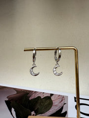 • Elegant moon hoops with sparkling CZ stones 🌙✨