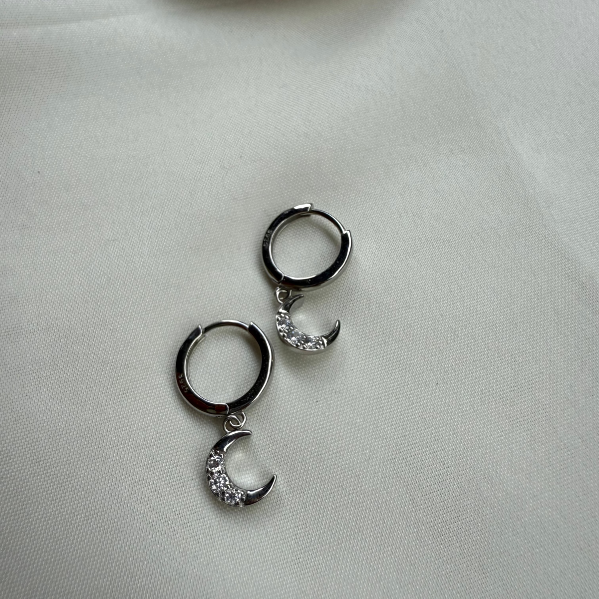 Elegant moon hoops with sparkling CZ stones 🌙✨