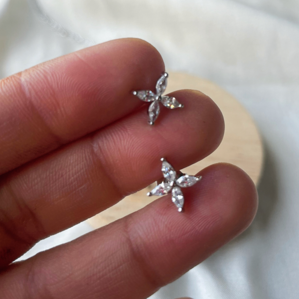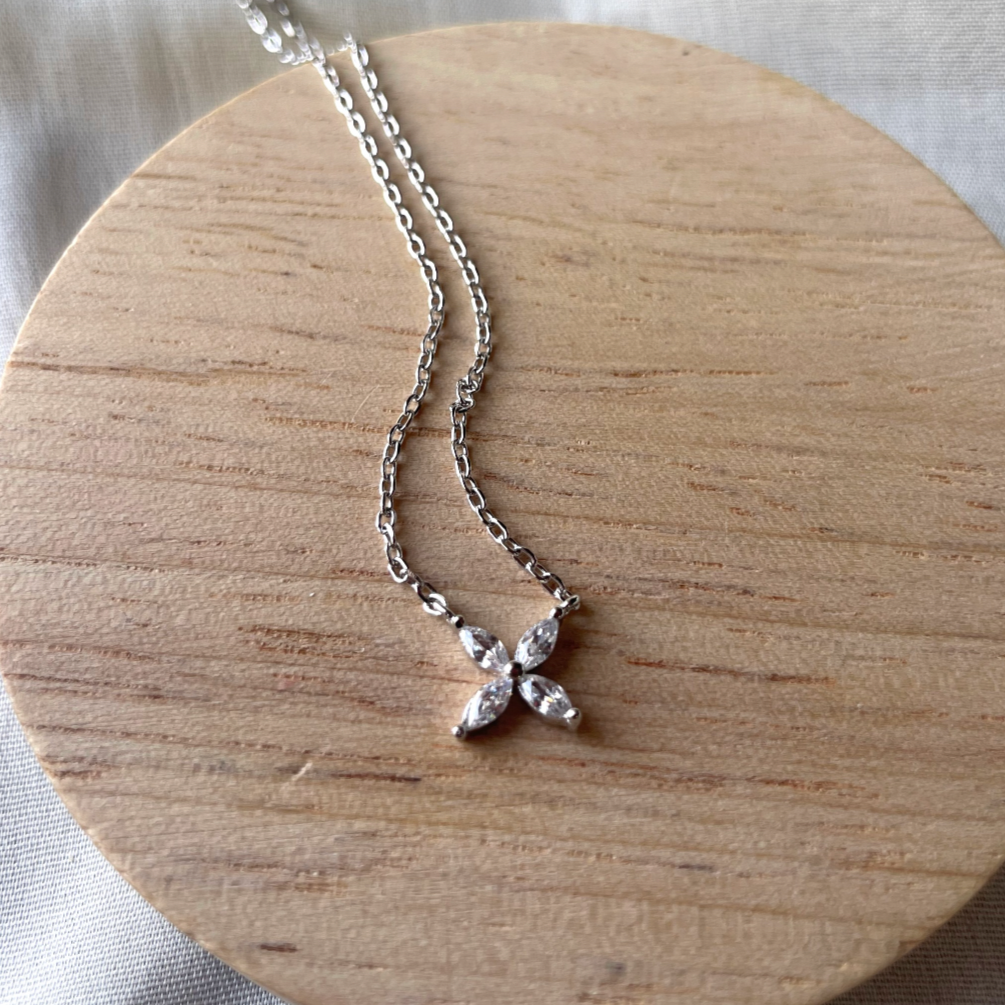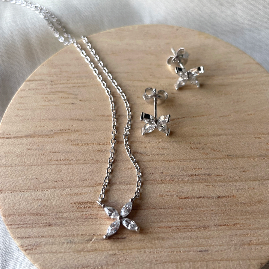Rosie Combo Set – Dainty Flower Necklace & Earrings (Sterling Silver)